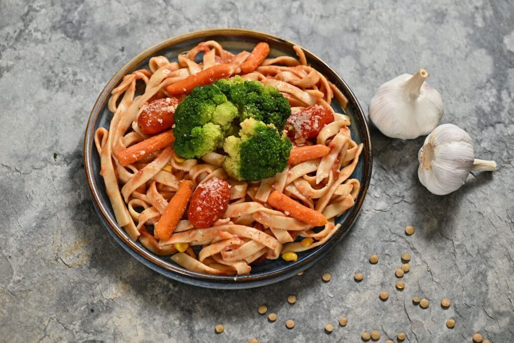 Plato de pasta con verduras